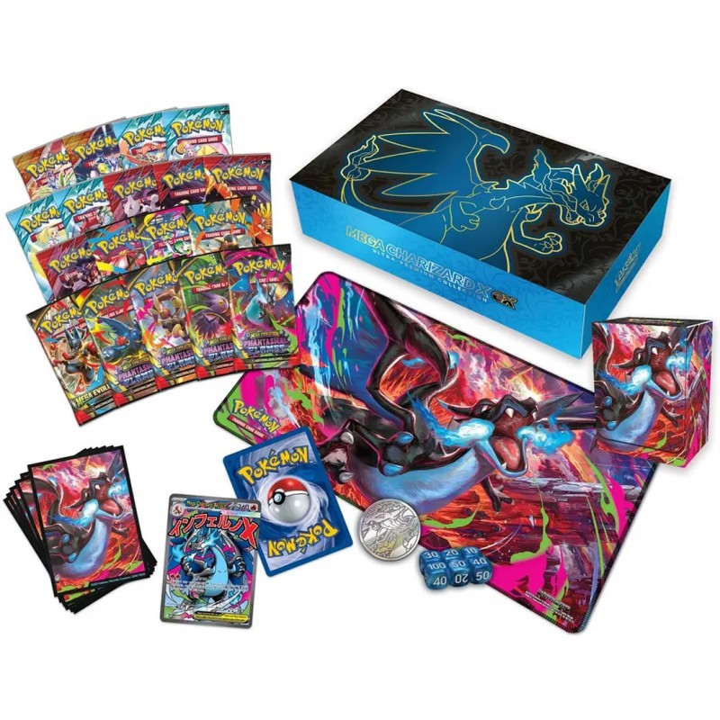 ¡El inmenso poder de la Megaevolución enciende las fulgurantes llamas azules de Mega-Charizard X ex! Este feroz Pokémon ex Megaevolución consume Energía Fuego para avivar su ataque Infierno X, aumentando su daño con cada carta que descartes. Mega-Charizard X ex llega en forma de carta promo holográfica junto a Oricorio ex, también como carta promo holográfica, que te ayudará a poner más Energía Fuego en juego. Encontrarás muchos más Pokémon dentro del montón de sobres de refuerzo, y te destacarás en el combate gracias a los accesorios, entre ellos 1 tapete, 1 portamazo y fundas para cartas con la intensa ilustración de Mega-Charizard X en acción.